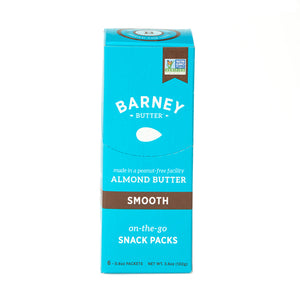 Our “original, classic”, super-smooth, and spreadable Barney Almond Butter in a convenient on-the-go snack-size portion. Made with skin-free roasted almonds, which makes for a grit-free texture and mild almond taste. Best taste and texture of any almond butter around! Slightly sweetened and salted. Take Barney on-the-go packs on all your life adventures!